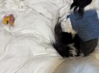 お母さんが 洋風の狆ちゃんの古裂(こぎれ)を 連れて帰りました。