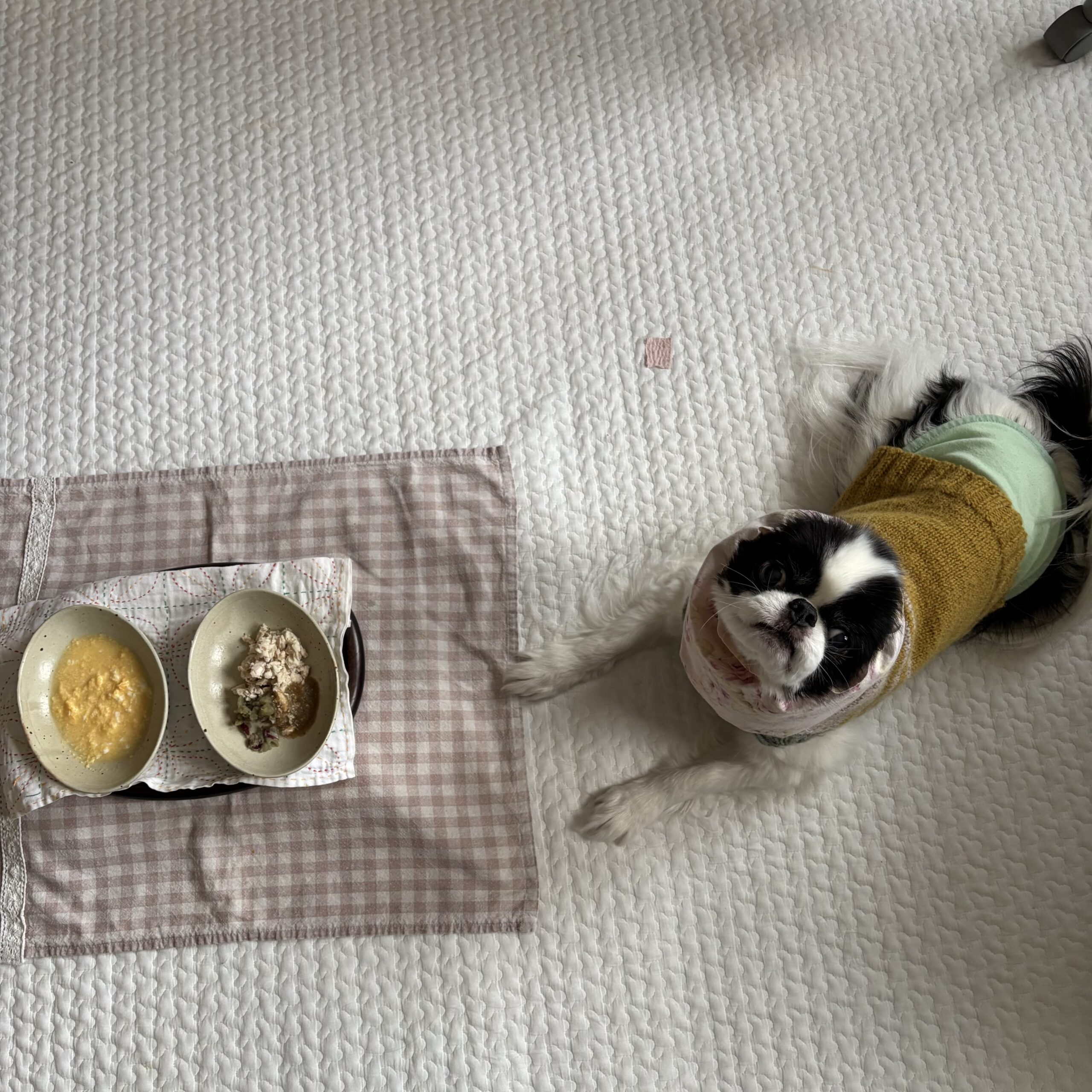 お料理の先生と茶々。 問題が行き詰まると「茶々ちゃん、かわいっ💓」と仰る。 これも知恵🤭 茶々丸は💩が固い傾向があって・・ 野菜を増やして ...